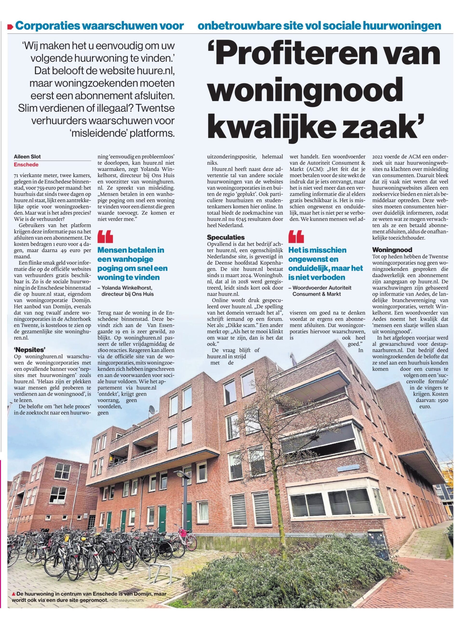 De website huure.nl belooft woningzoekenden dat zij eenvoudig een huurwoning kunnen vinden. Daarvoor moeten ze eerst een abonnement afsluiten. Slim verdienen of illegaal? Twentse verhuurders waarschuwen voor ‘misleidende’ platforms.
